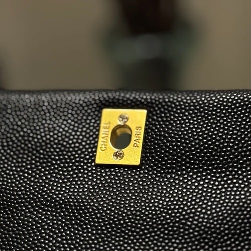 - الشعار الذهبي البارز من شانيل يعزز هوية التصميم بأسلوب كلاسيكي واضح.